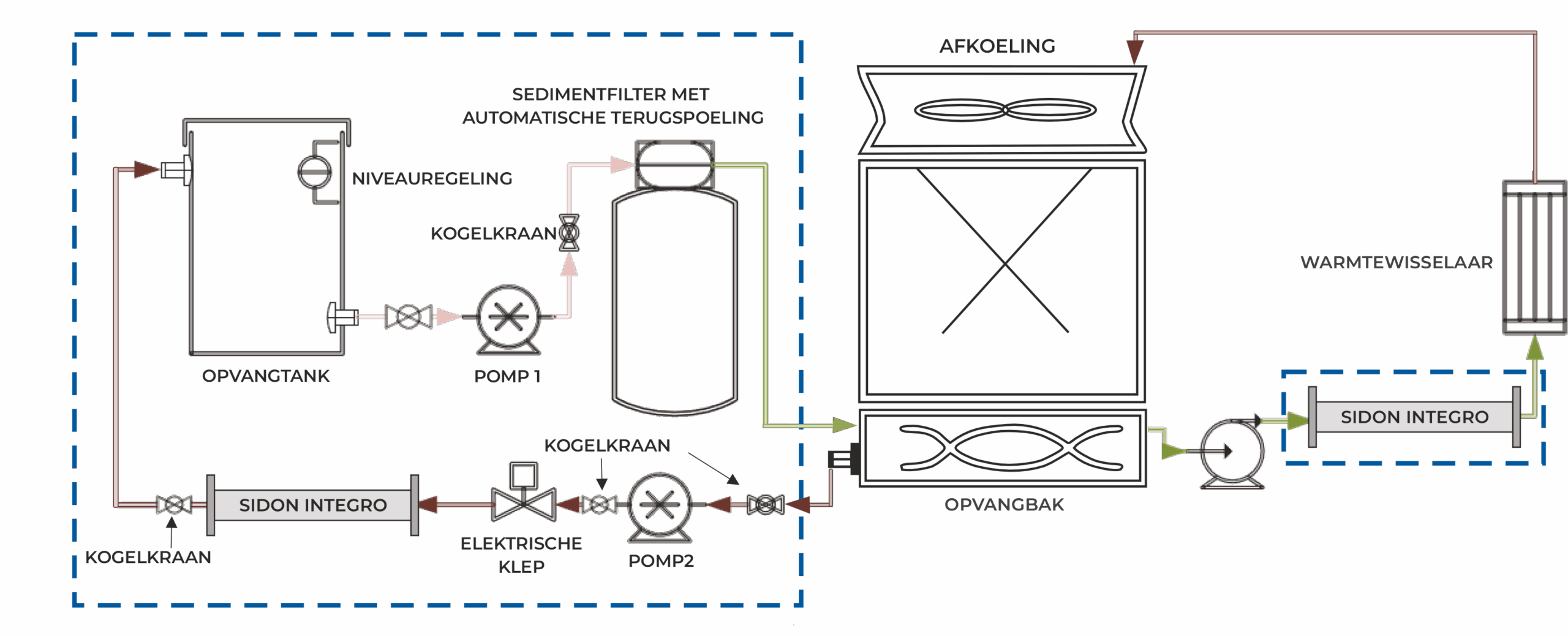 Onze eigen watervooruitstrevende technologie is geïntegreerd met beproefde filtratieprocessen om de Sidon Water Conservation Solution voor koeltorens te creëren. Deze oplossing vermindert drastisch de hoeveelheid “blowdown”-water die verloren gaat tijdens normale koeltoeractiviteiten, terwijl tegelijkertijd de vorming van kalkaanslag en corrosie in essentiële koeltorenonderdelen sterk wordt gereduceerd.